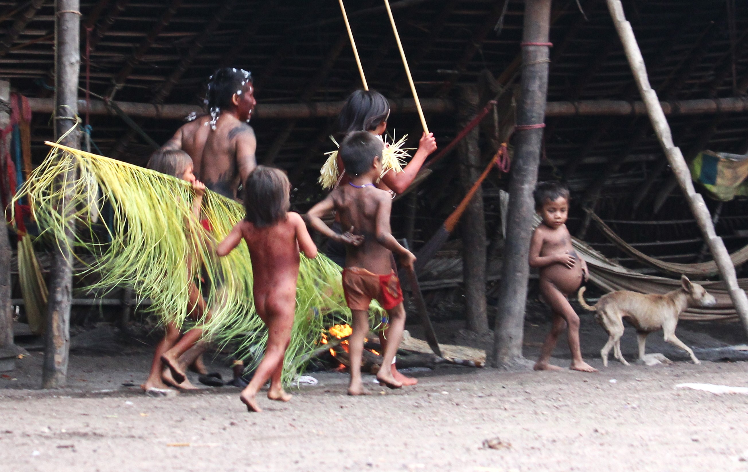 Al mattino ci muoviamo con un'imbarcazione leggera, che ci permette di navigare i canali più stretti, nel folto della foresta Amazzonica, per arrivare vicino allo “shabono” degli Yanomami: lo “shabono” è il centro della vita delle comunità Yanomami, un intero villaggio circolare, con un singolo tetto, con uno spazio comunitario all’aperto all’interno del perimetro delle capanne. Ogni villaggio Yanomami è abitato da persone appartenenti allo stesso ceppo familiare, e può essere abitato dalle 50 alle 500 persone. Iniziamo a fare conoscenza con gli abitanti della comunità: nei giorni di permanenza, in modo graduale, ci troviamo a prendere parte alla vita quotidiana degli Yanomami, osservandoli in tutte le loro attività, mentre cacciano, pescano e si muovono nella selva. Nei pomeriggi di permanenza possiamo osservare il rituale del Yopo, che prevede l’assunzione di un preparato enteogeno a base di semi tostati e tritati, a cui prendono parte gli uomini e gli sciamani della comunità, mentre, l’ultimo giorno, ci congediamo dalla comunità, i cui membri, bambini inclusi, danzeranno per noi.
