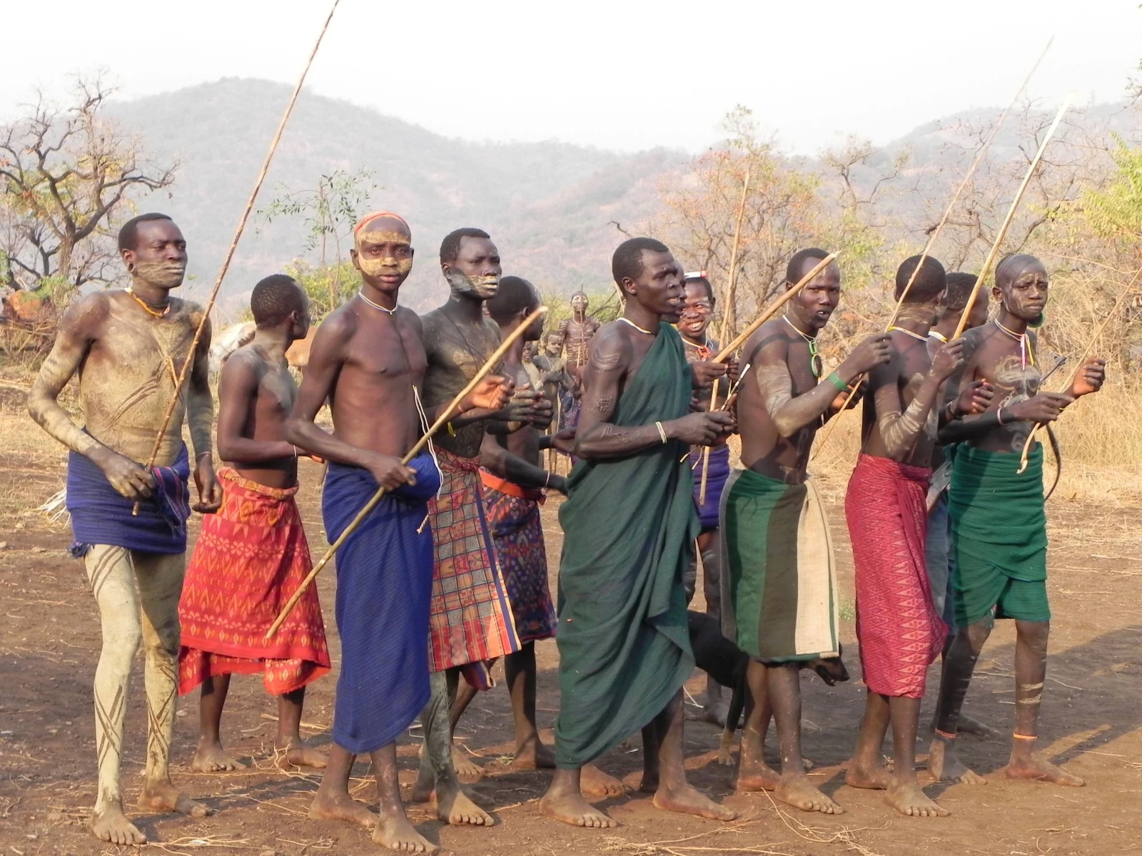 Al mattino presto, dopo colazione, trekking per raggiungere il villaggio Kurum; sono collocati su due versanti opposti della valle utilizzata per il pascolo delle loro greggi. Passeggiata lungo il fiume Kibish per assistere alla cerimonia del “Body painting” ovvero l’arte di dipingersi il corpo. Anche per i Surma, come per i Karo, questa tradizione riveste molta importanza: la decorazione è ottenuta spalmando sul viso un impasto di acqua e caolino sul quale vengono tracciati con le dita disegni, secondo schemi decorativi che cambiano di volta in volta. Pranzo al sacco, giornata dedicata alla scoperta delle varie decorazioni corporee.