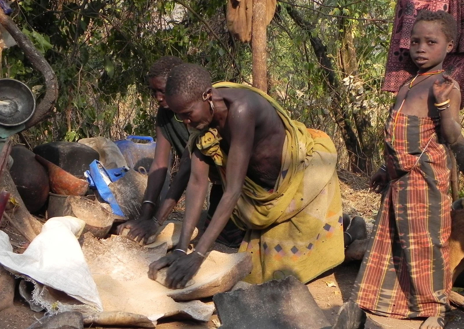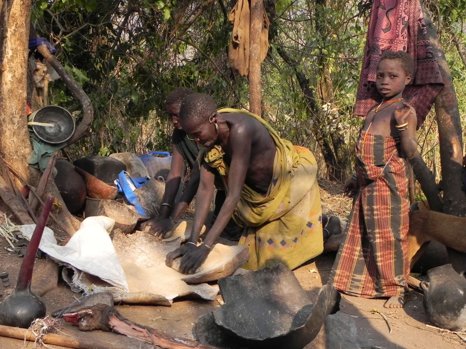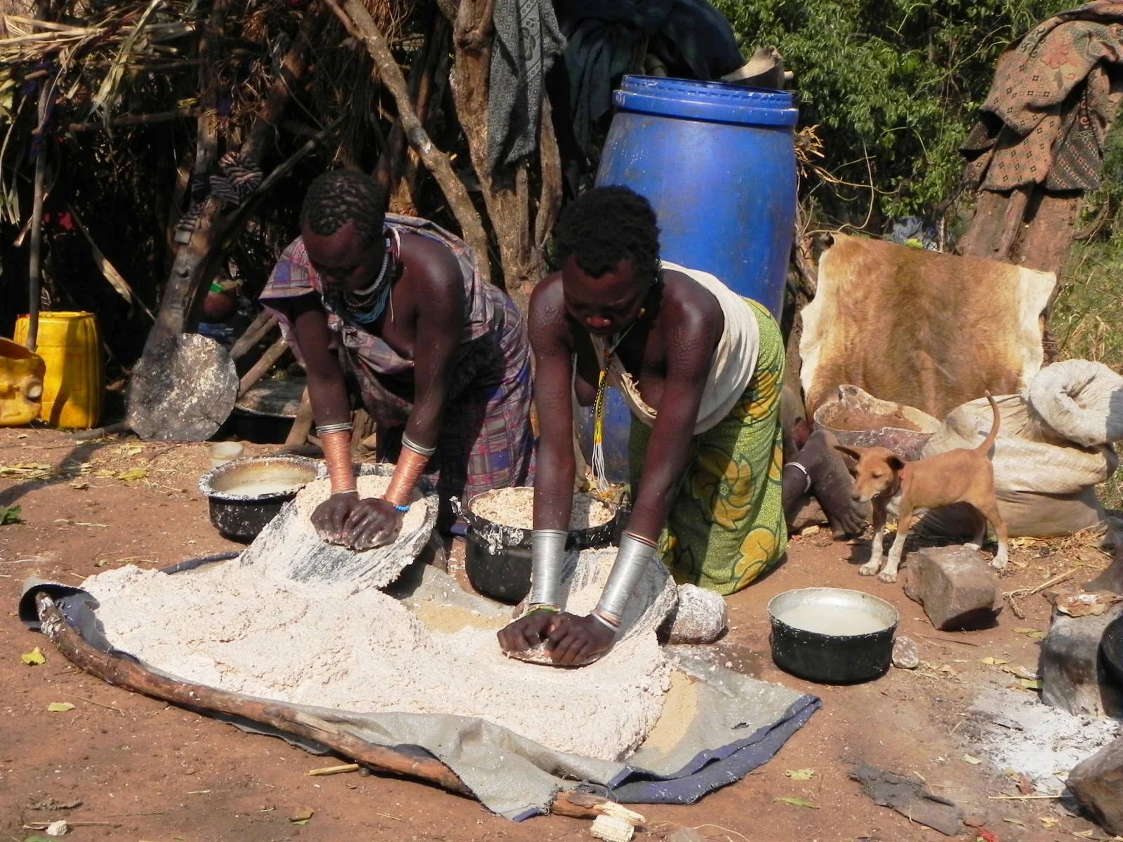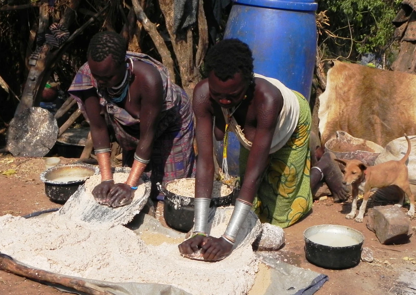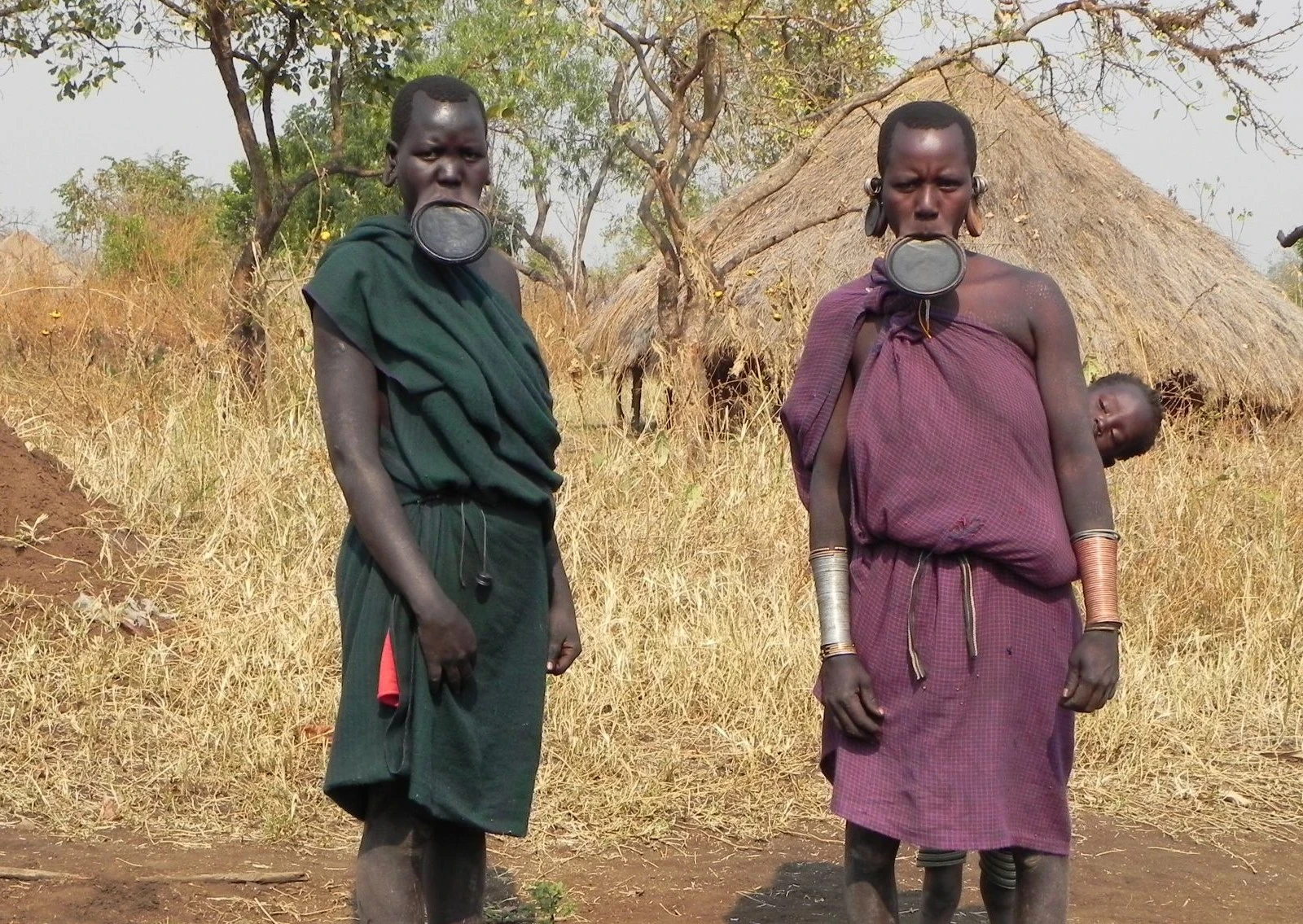 Dopo la prima colazione si effettuerà un piccolo trekking verso le stalle collocate sulle colline adiacenti al paesino. Si assiste alla cerimonia del “pasto del sangue”che viene eseguita presto al mattino prima del pascolo. I giovani allevatori bevendo il sangue delle vacche crescono forti e sani. Rientro al campeggio e proseguimento in macchina per raggiungere il villaggio Dollote; sono collocati su due versanti opposti della valle utilizzata per il pascolo delle loro greggi. Il villaggio e composto da un numero variabile di capanne circolari non tanto distanti l'una dall'altra, ognuna delle quali è abitata da una sola famiglia; il terreno sul quale sorge il villaggio e' cosparso da numerosi paletti ai quali è fissata una corda che termina con un cappio. Queste corde vengono utilizzate per legare le zampe degli animali quando rientrano dal pascolo. Essendo una zona malarica, per proteggere gli animali dalle zanzare anofele, nel terreno vengono scavati dei piccoli crateri che, riempiti di sterco secco a cui viene dato fuoco, eruttano un fumo acre che dovrebbe tenerle lontane. Pranzo al sacco. Al rientro si assiste alla cerimonia della “scarificazione” praticata dai guerrieri Suri ed utlilizzata per evidenziare il loro eroismo; nel caso delle donne, elaborate scarificazioni vengono usate unicamente per decorare spalle, braccia e ventre.