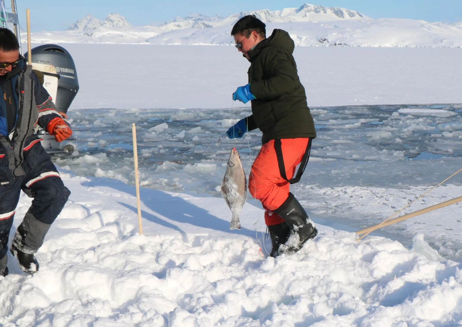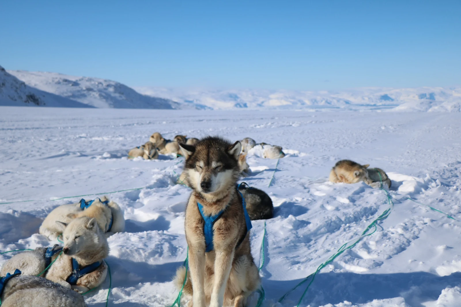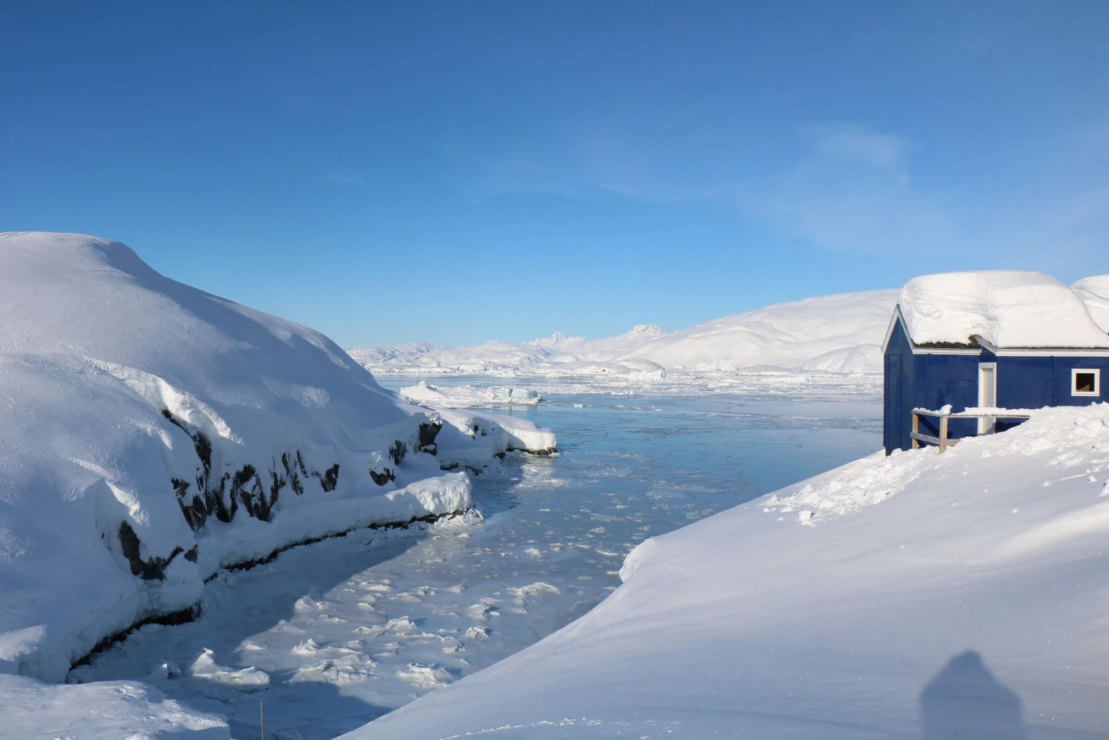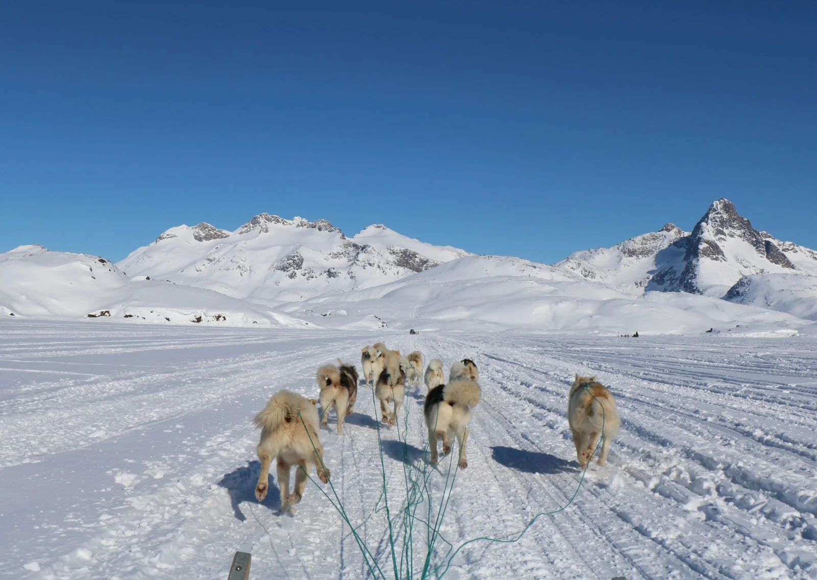 Al mattino, ci dirigiamo verso la valle di Kugarmit, lunga 10 chilometri. Oggi attraversiamo diversi grandi ghiacciai e laghi ghiacciati, fino al fiordo di Imaila. Proseguiamo quindi sul fiordo ghiacciato verso l'insediamento chiuso di Qernetivartivit, dove cerchiamo un buon posto per la pesca sul ghiaccio e tentiamo la fortuna catturando il merluzzo o l'halibut della Groenlandia. Pernottamento in rifugio