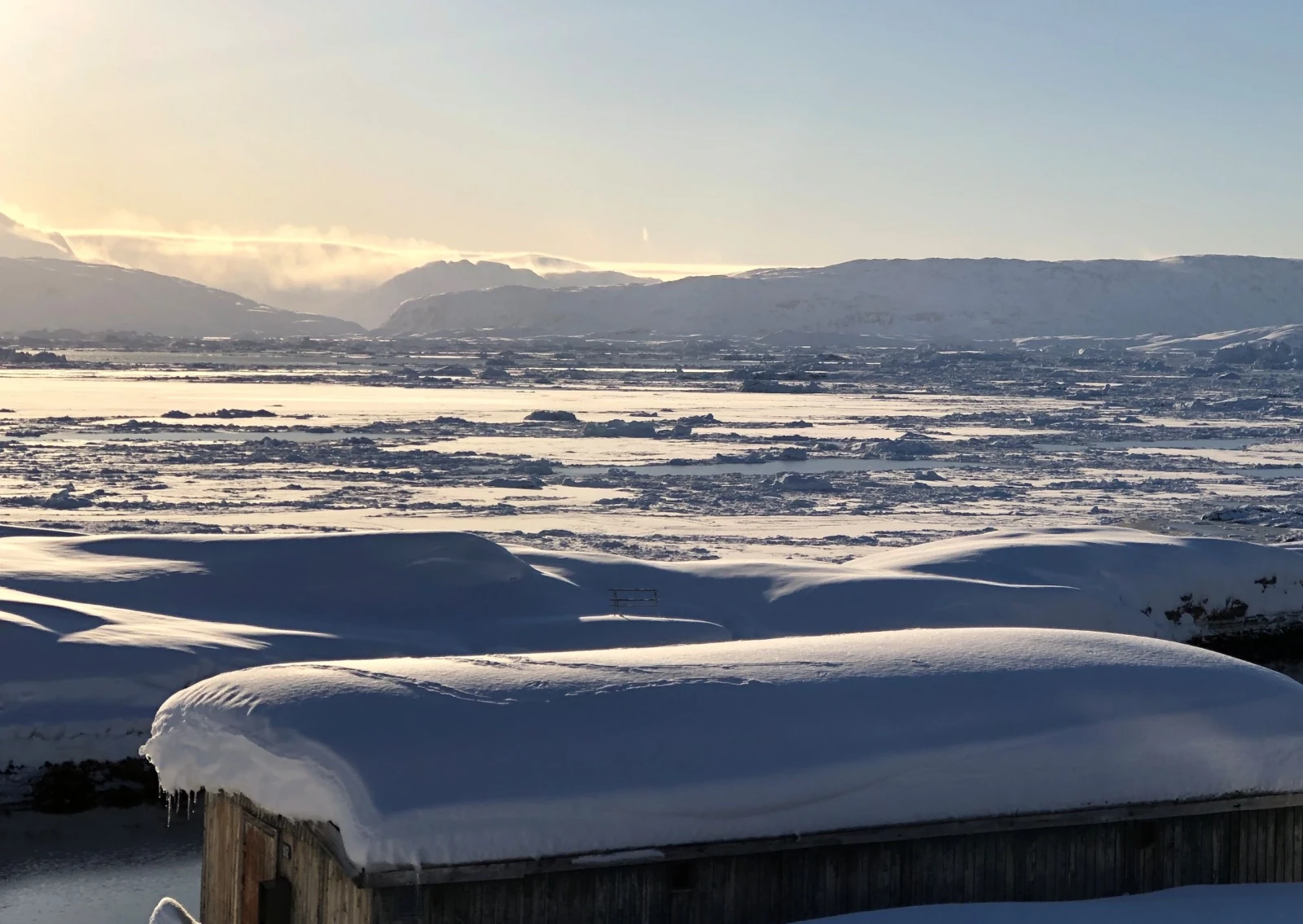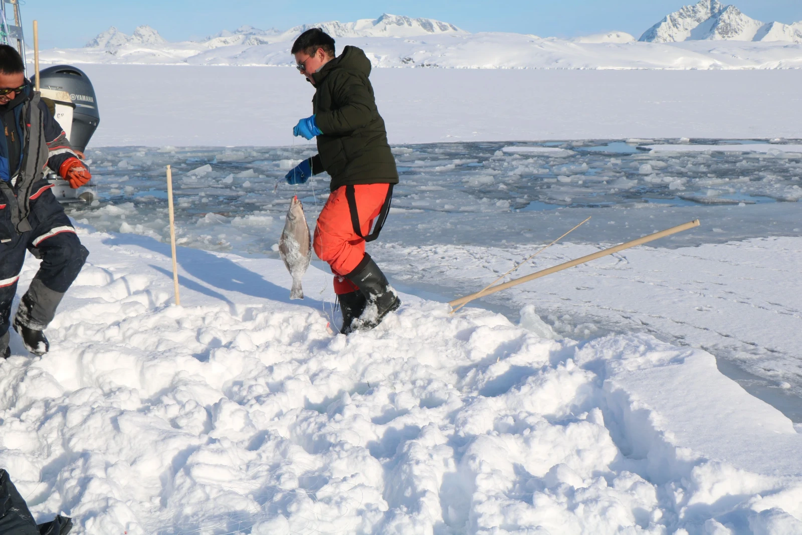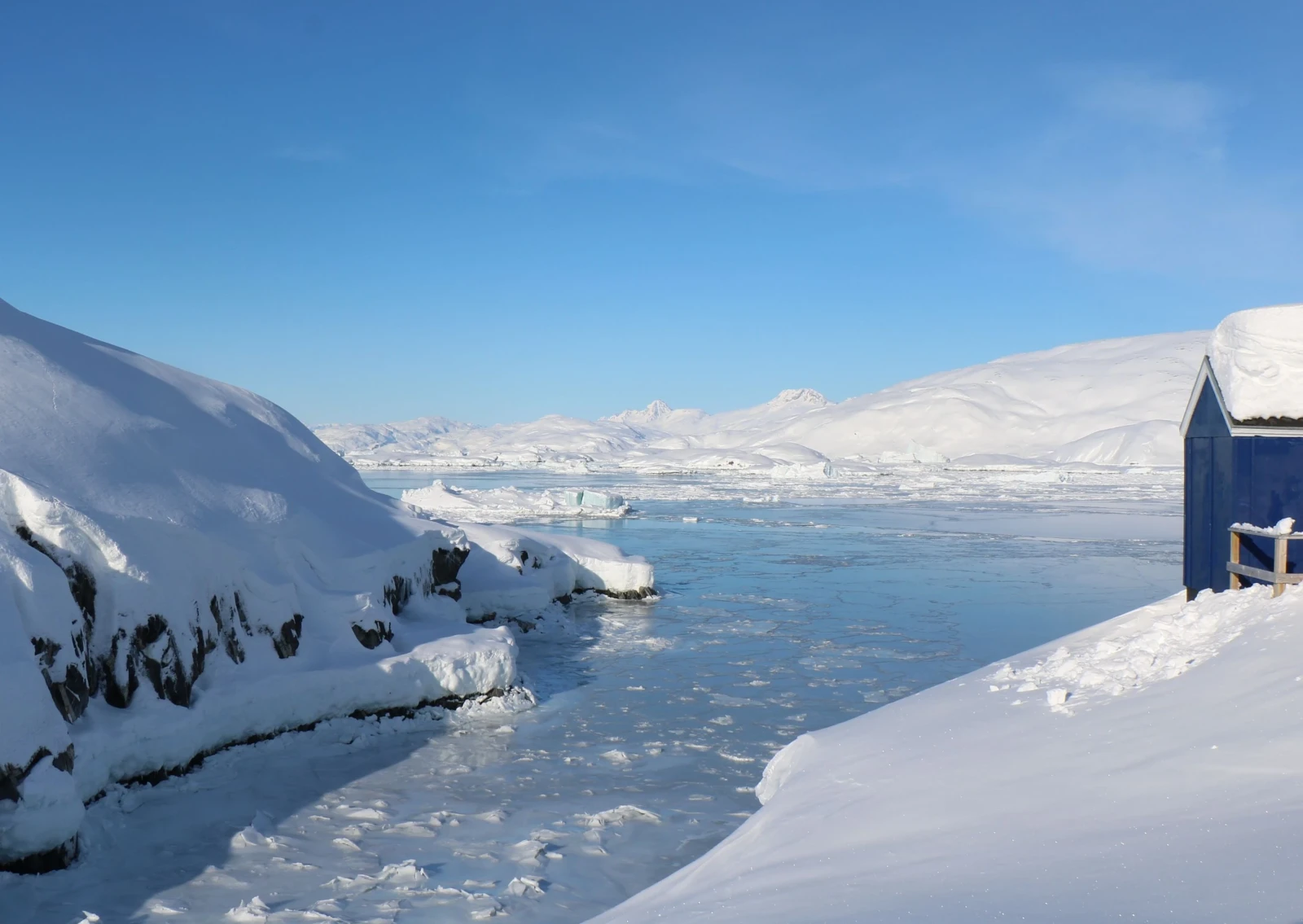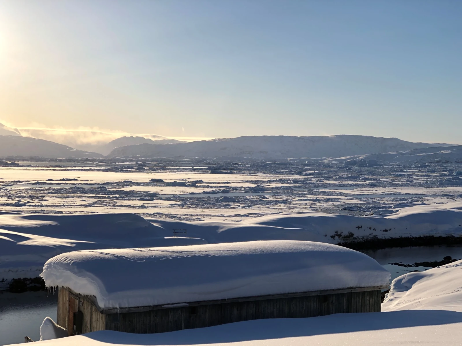 Al mattino, ci dirigiamo verso la valle di Kugarmit, lunga 10 chilometri. Oggi attraversiamo diversi grandi ghiacciai e laghi ghiacciati, fino al fiordo di Imaila. Proseguiamo quindi sul fiordo ghiacciato verso l'insediamento chiuso di Qernetivartivit, dove cerchiamo un buon posto per la pesca sul ghiaccio e tentiamo la fortuna catturando il merluzzo o l'halibut della Groenlandia. Pernottamento in rifugio