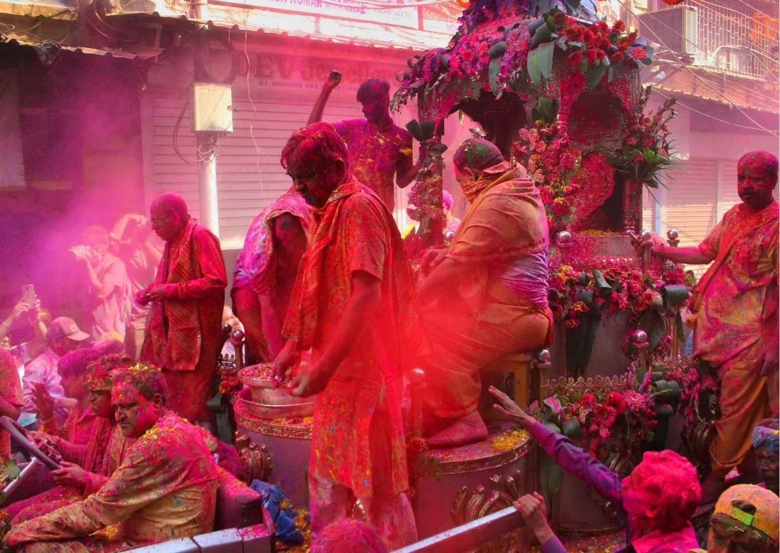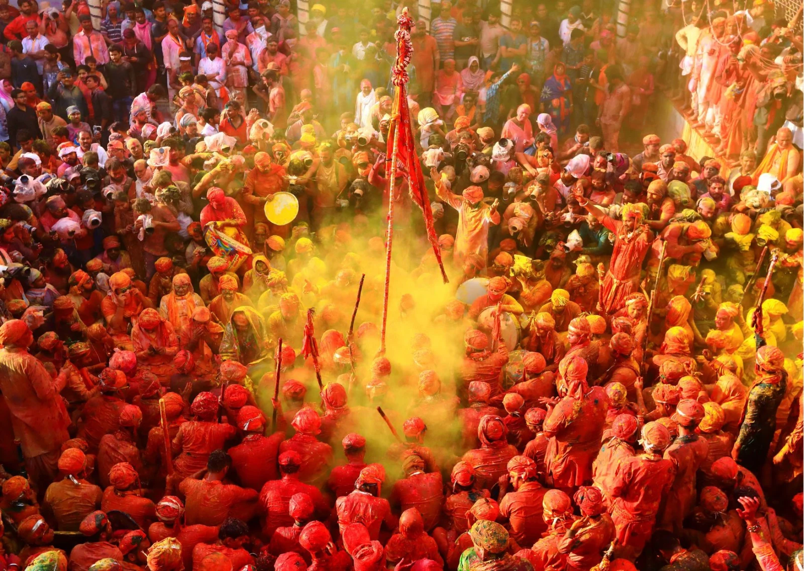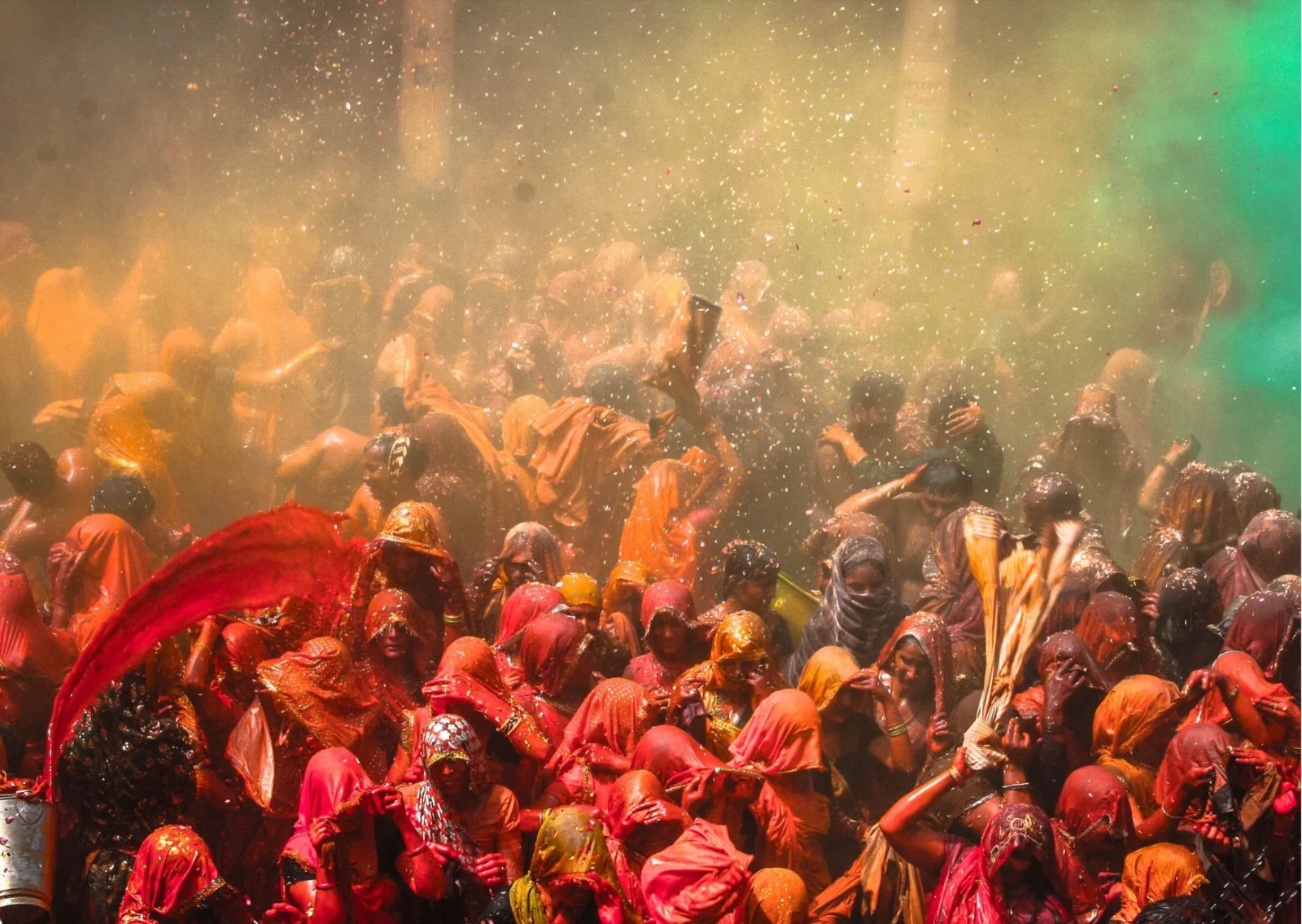 Nel villaggio di Barsana, iniziano oggi le celebrazioni del Lathmar Holi: traducibile in italiano come “Holi con i bastoni”, la celebrazione più autentica e locale della famosa “festa dei colori” indiana viene festeggiata in questi villaggi nei pressi di Vrindavan circa una settimana prima del più famoso e globalizzato Holi, per celebrare l’amore tra le divinità Vishnu e Radha, e più in generale l’inizio della primavera e la vittoria del bene sul male. Barsana è il luogo in cui, secondo la mitologia Indù, crebbe Radha, moglie prediletta del dio Krishna. Secondo la leggenda, il giovane e giocoso Krishna venne in visita proprio a Barsana dal vicino villaggio di Nandgaon, prendendo in giro scherzosamente l’amata Radha e le sue amiche. Per tutta risposta, le donne di Barsana scacciarono Krishna a colpi di bastone, chiamato “lathi” in lingua locale, dando così origine alla festa del Lathmar Holi. Ancora oggi, in questa giornata centinaia di giovani uomini di Nandgaon si recano in visita alle donne di Barsana, dove sono bersaglio di vernici, polveri colorate (gulal) e, soprattutto, dei bastoni delle donne, che “vendicano” scherzosamente i comportamenti sopra le righe di Krishna nei confronti di Radha. Siamo testimoni quest’oggi di un incredibile uragano di colori, canti e danze caotiche e sfrenate, a cui, con una buona dose di prudenza, possiamo prendere parte! Pernottamento a Vrindavan