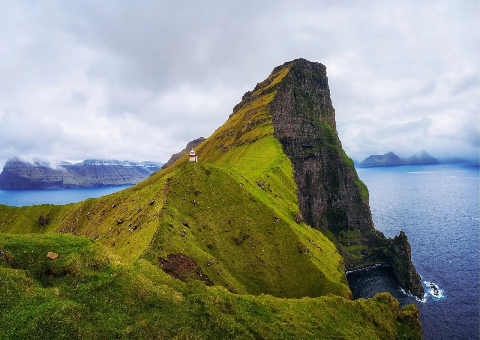 Oggi partiamo presto per assicurarci un posto sul traghetto che da Klaksvík, cittadina principale del nord, ci porterà alla scoperta dell’isola di Kalsoy. Stretta, dalla forma allungata, e poco densamente popolata anche per gli standard faroesi, Kalsoy è un paradiso per gli amanti del trekking. Qui intraprendiamo infatti uno dei percorsi più spettacolari delle Faroe, lungo un sentiero piuttosto breve ma incredibilmente panoramico che ci porterà al cospetto del faro di Kallur: giunti dinanzi al faro, dominato dai profili delle montagne che si gettano a picco nell’oceano, una vera e propria cartolina si apre davanti ai nostri occhi. Di rientro dal trekking, prima di prendere il traghetto che ci riporta a Klaksvík, sostiamo brevemente nel piccolo villaggio di Mikladalur dove rendiamo omaggio alla statua della “selkie”, leggendaria donna-foca della mitologia norrena.