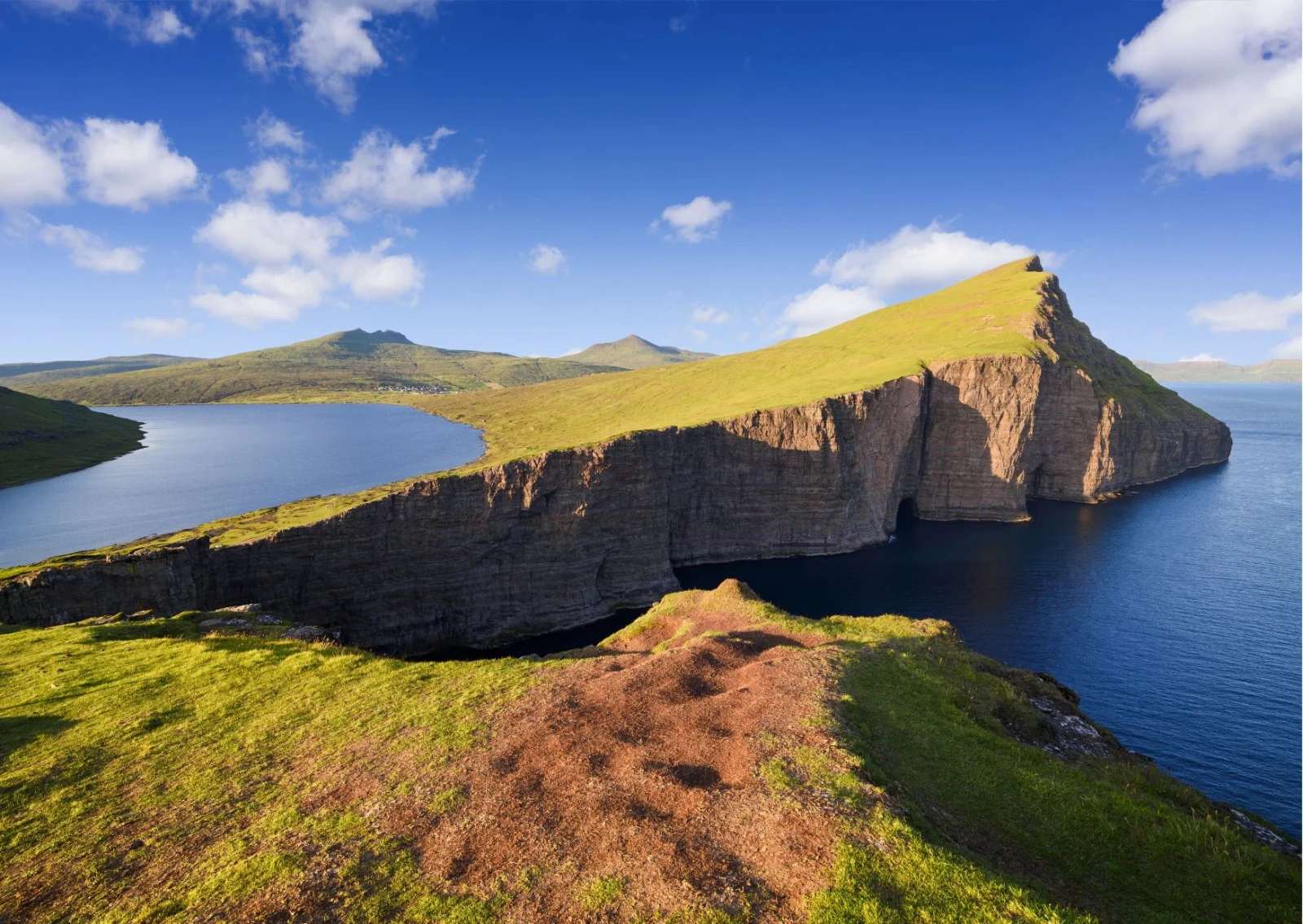 Dedichiamo la prima giornata alle isole Faroe a due dei luoghi più iconici dell’arcipelago! A breve distanza dall’aeroporto, partiamo per il trekking panoramico intorno al lago Sørvágsvatn, meraviglioso bacino lacustre affacciato su di una scogliera a picco sull’oceano. Ci prendiamo tutto il tempo necessario per ammirare e fotografare da varie angolazioni uno degli scenari più spettacolari delle Faroe. Nel pomeriggio, ci spostiamo verso il villaggio di pescatori di Bøur. Da qui, a seconda del meteo e della fatica, possiamo decidere se incamminarci lungo l’antico sentiero postale fino a Gásadalur, oppure avvicinarci in auto, percorrendo il tunnel che ha collegato la comunità di Gásadalur alla rete stradale faroese solo a partire dal 2006. Arrivati a Gásadalur, visitiamo la splendida cascata di Mulafossur, che si getta direttamente nell’Oceano Atlantico da una scogliera alta 60 metri.