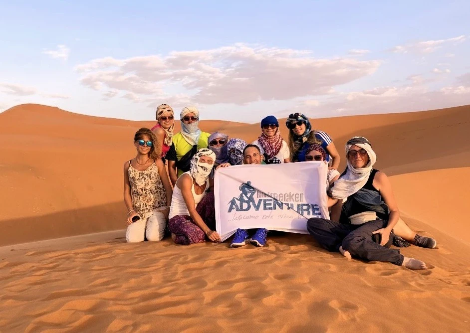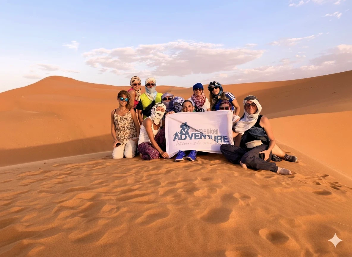 Di buon mattino lasciamo Fes per spingerci decisi verso il sud est del Marocco. Ci aspetta una lunga giornata on the road attraverso magnifici scenari sempre diversi, dalle foreste di cedri alle ampie vallate desertiche. Facciamo una sosta facoltativa nella cittadina di Ifrane, definita la “Svizzera del Marocco”, nella vicina foresta di Azrou, dove è possibile vedere curiose colonie di macachi interagire e giocare con le persone che si fermano in questo luogo. Nel pomeriggio, dopo aver percorso la valle desertica dello Ziz, arriviamo a Merzouga, la porta di ingresso al grande Sahara. Siamo proprio ai primi margini occidentali del deserto più grande ed affascinante del mondo. Dall’alto di una duna, guardando verso est, proviamo a immaginare migliaia di chilometri di dune, sabbie, pietraie e aride catene montuose, che si estendono senza soluzione di continuità da qui all’Egitto, fino al Mar Rosso. Una sensazione travolgente. Ci trasferiamo al campo tendato e, a dorso dei nostri cammelli, facciamo una breve passeggiata per ammirare il primo tramonto sahariano. Cena nel deserto e pernottamento in campo tendato.